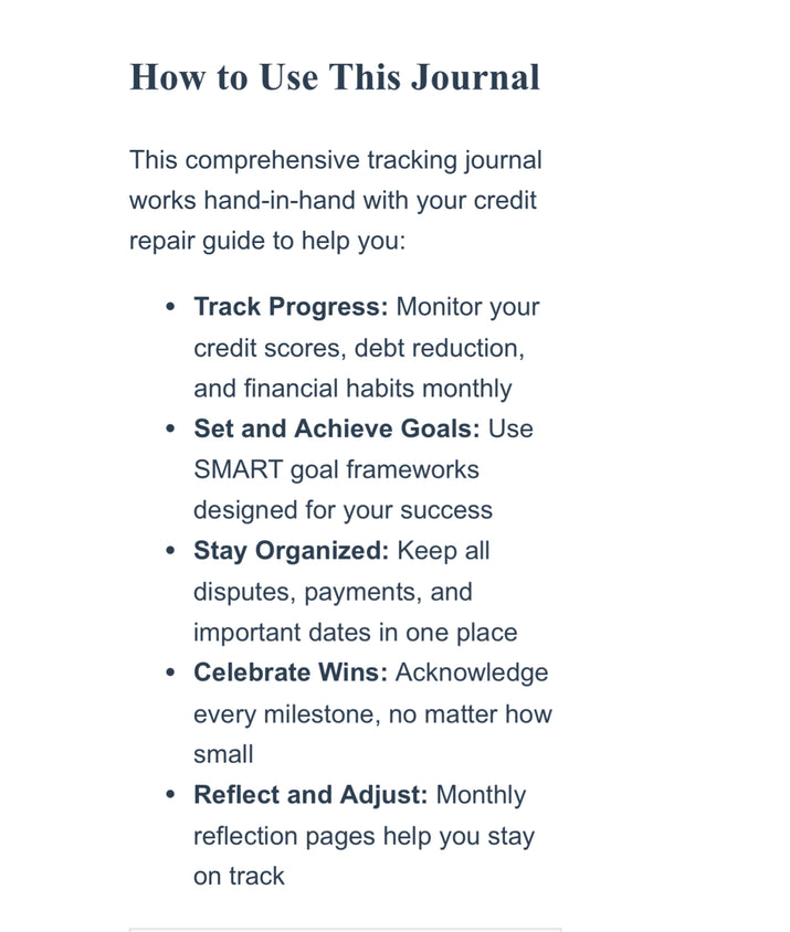Question 2: How will the progress tracking journal help me in my credit repair journey?